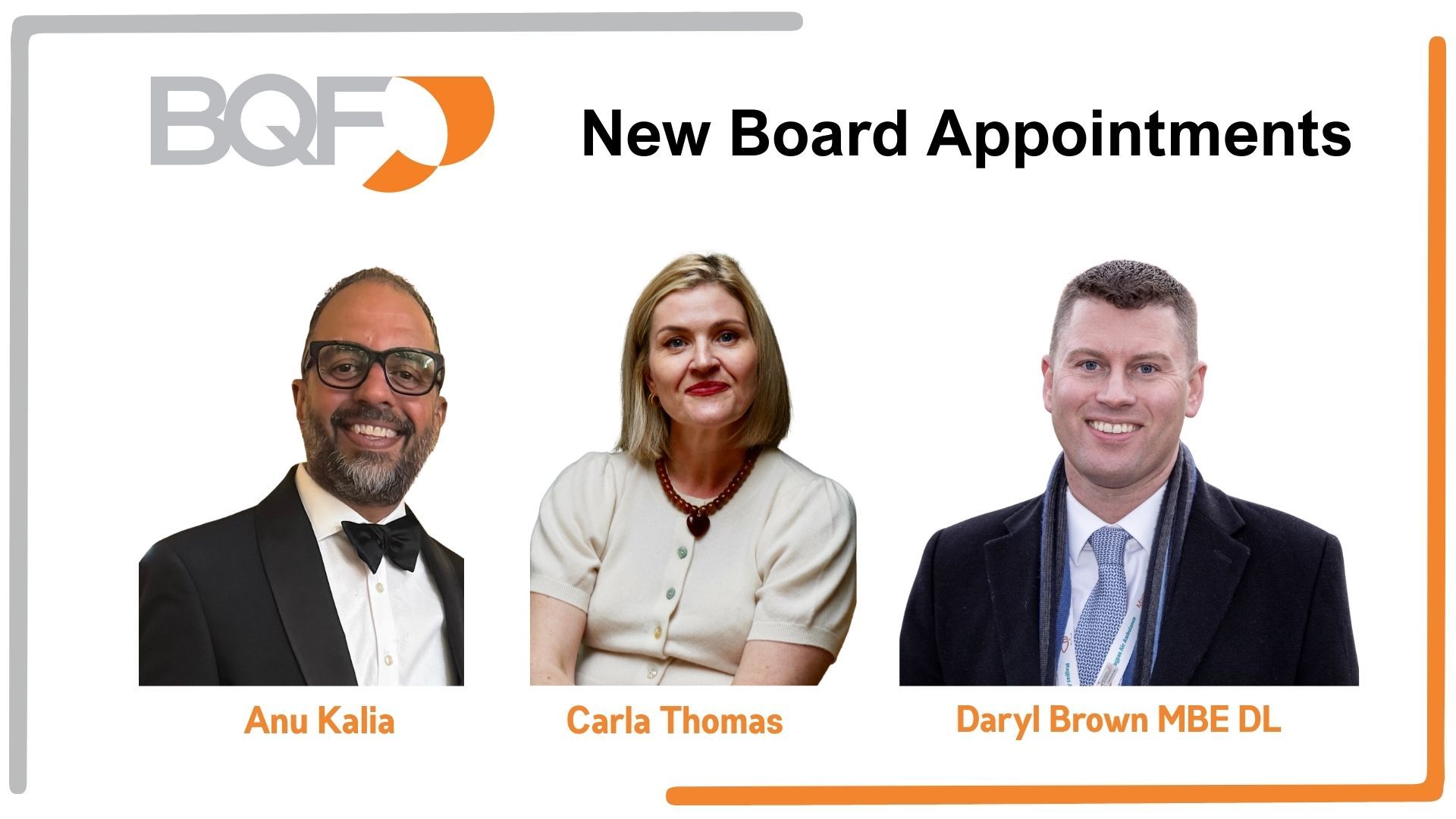“I’m really excited to announce that three new Directors, each from the membership community, will be joining the existing BQF Board.